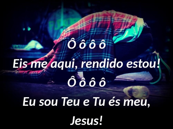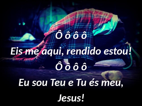 - Ô ô ô ôEis me aqui, rendido estou!Ô ô ô ôEu sou Teu e Tu és meu,Jesus!