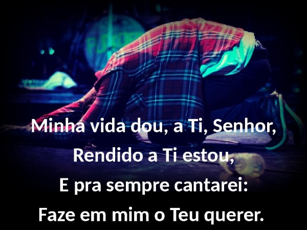 - Minha vida dou, a Ti, Senhor,Rendido a Ti estou,E pra sempre cantarei:Faze em mim o Teu querer.