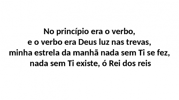 - No princípio era o verbo, e o verbo era Deus luz nas trevas, minha estrela da manhã nada sem Ti se fez, nada sem Ti existe, ó Rei dos reis