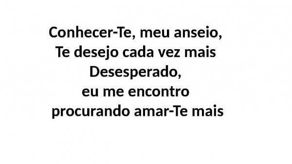 - Conhecer-Te, meu anseio, Te desejo cada vez mais Desesperado, eu me encontro procurando amar-Te mais