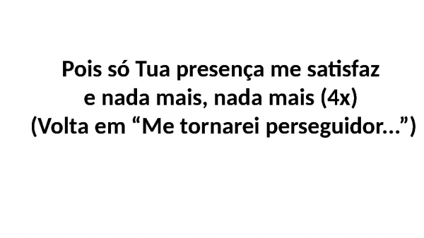 - Pois só Tua presença me satisfaz e nada mais, nada mais (4x) (Volta em “Me tornarei perseguidor...”)