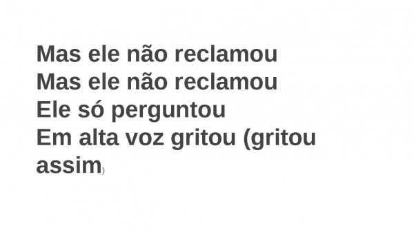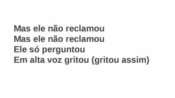 - Mas ele não reclamouMas ele não reclamouEle só perguntouEm alta voz gritou (gritou assim)