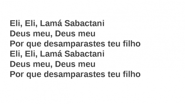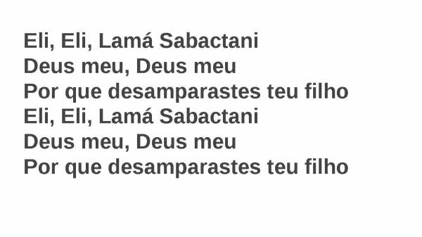 - Eli, Eli, Lamá SabactaniDeus meu, Deus meuPor que desamparastes teu filhoEli, Eli, Lamá SabactaniDeus meu, Deus meuPor que desamparastes teu filho
