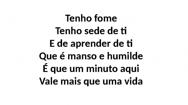 - Tenho fomeTenho sede de tiE de aprender de tiQue é manso e humildeÉ que um minuto aquiVale mais que uma vida