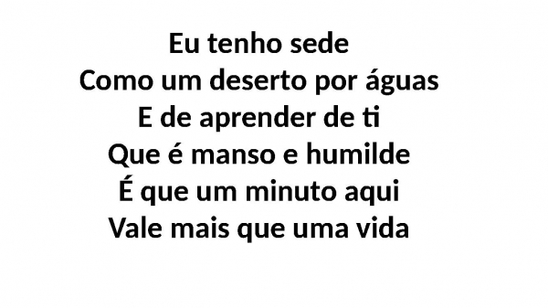 - Eu tenho sedeComo um deserto por águasE de aprender de tiQue é manso e humildeÉ que um minuto aquiVale mais que uma vida