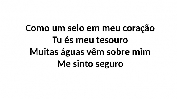 - Como um selo em meu coraçãoTu és meu tesouroMuitas águas vêm sobre mimMe sinto seguro