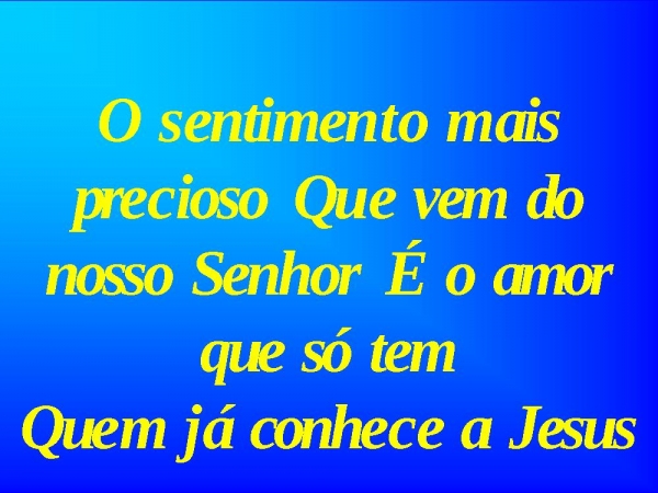 - O sentimento mais precioso Que vem do nosso Senhor É o amor que só temQuem já conhece a Jesus