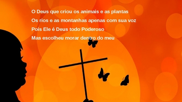 - O Deus que criou os animais e as plantasOs rios e as montanhas apenas com sua vozPois Ele é Deus todo PoderosoMas escolheu morar dentro do meu