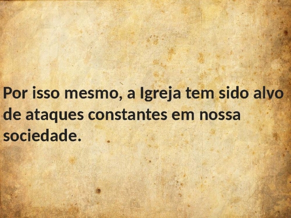 - Por isso mesmo, a Igreja tem sido alvo de ataques constantes em nossa sociedade.