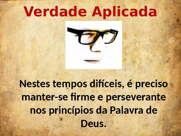 - Verdade AplicadaNestes tempos difíceis, é preciso manter-se firme e perseverante nos princípios da Palavra de Deus.