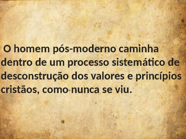 - O homem pós-moderno caminha dentro de um processo sistemático de desconstrução dos valores e princípios cristãos, como nunca se viu.