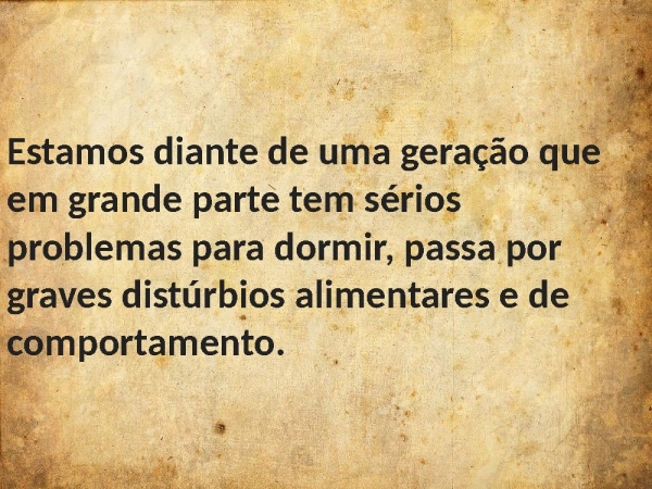 - Estamos diante de uma geração que em grande parte tem sérios problemas para dormir, passa por graves distúrbios alimentares e de comportamento.