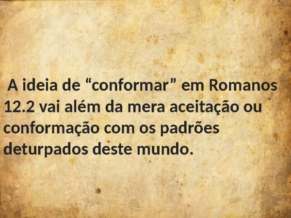 - A ideia de “conformar” em Romanos 12.2 vai além da mera aceitação ou conformação com os padrões deturpados deste mundo.