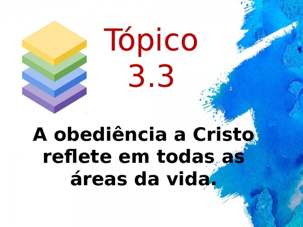 - A obediência a Cristo reflete em todas as áreas da vida.Tópico 3.3