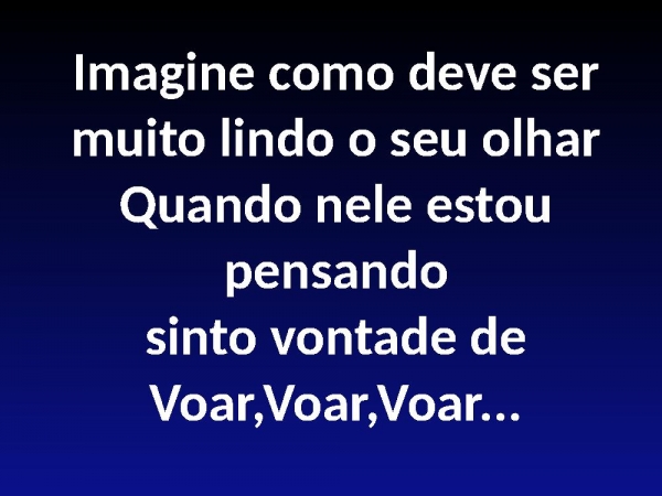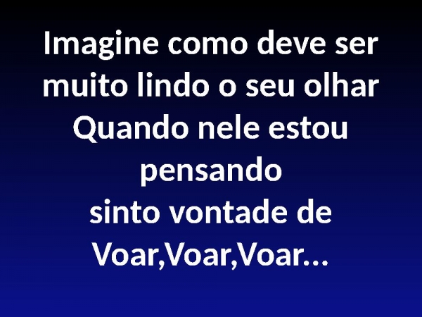 - Imagine como deve sermuito lindo o seu olharQuando nele estou pensandosinto vontade de Voar,Voar,Voar...