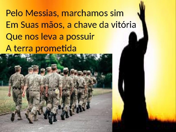 - Pelo Messias, marchamos simEm Suas mãos, a chave da vitóriaQue nos leva a possuir A terra prometida
