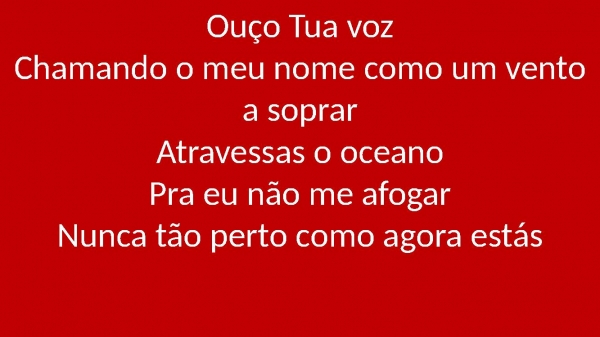 - Ouço Tua vozChamando o meu nome como um vento a soprarAtravessas o oceanoPra eu não me afogarNunca tão perto como agora estás