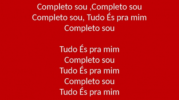 - Completo sou ,Completo souCompleto sou, Tudo És pra mimCompleto souTudo És pra mimCompleto souTudo És pra mimCompleto souTudo És pra mim