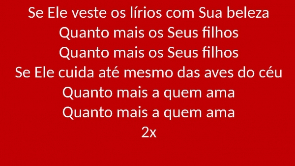 - Se Ele veste os lírios com Sua belezaQuanto mais os Seus filhosQuanto mais os Seus filhosSe Ele cuida até mesmo das aves do céuQuanto mais a quem amaQuanto mais a quem ama2x