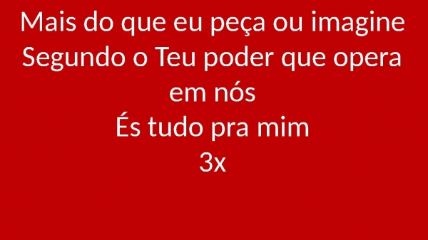 - Mais do que eu peça ou imagineSegundo o Teu poder que opera em nósÉs tudo pra mim3x