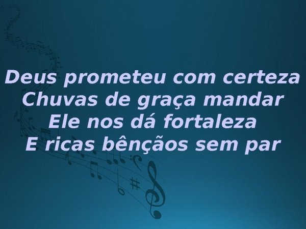 - Deus prometeu com certezaChuvas de graça mandarEle nos dá fortalezaE ricas bênçãos sem par