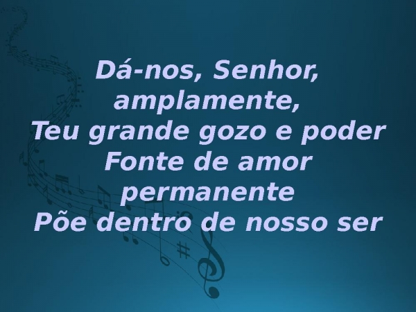 - Dá-nos, Senhor, amplamente,Teu grande gozo e poderFonte de amor permanentePõe dentro de nosso ser