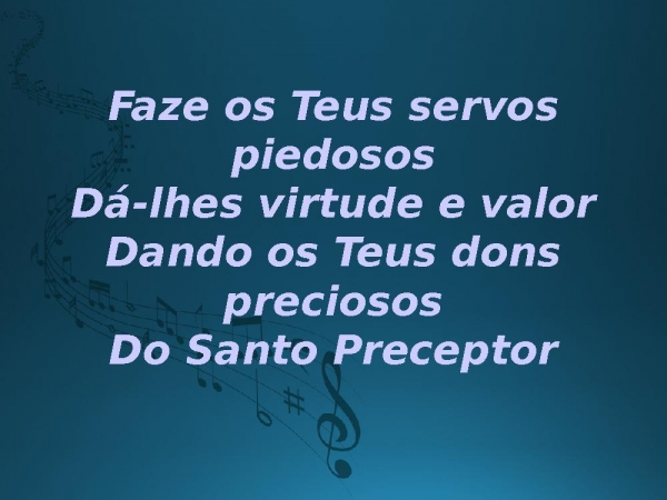 - Faze os Teus servos piedososDá-lhes virtude e valorDando os Teus dons preciososDo Santo Preceptor