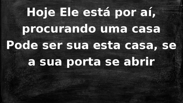 - Hoje Ele está por aí, procurando uma casaPode ser sua esta casa, se a sua porta se abrir