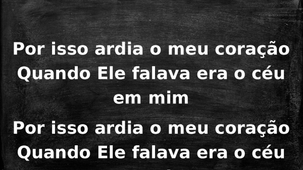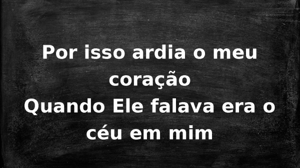 - Por isso ardia o meu coraçãoQuando Ele falava era o céu em mimPor isso ardia o meu coraçãoQuando Ele falava era o céu em mim