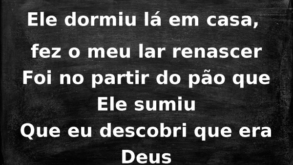 - Ele dormiu lá em casa, fez o meu lar renascerFoi no partir do pão que Ele sumiuQue eu descobri que era Deus