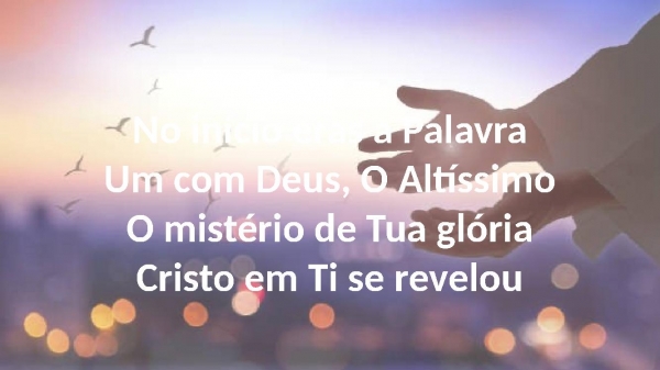 - No início eras a PalavraUm com Deus, O AltíssimoO mistério de Tua glóriaCristo em Ti se revelou
