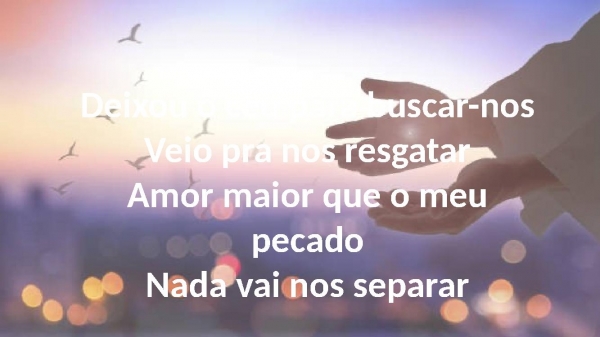 - Deixou o céu para buscar-nosVeio pra nos resgatarAmor maior que o meu pecadoNada vai nos separar