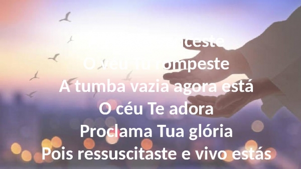 - A morte vencesteO véu Tu rompesteA tumba vazia agora estáO céu Te adoraProclama Tua glóriaPois ressuscitaste e vivo estás