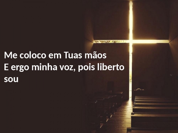 - Me coloco em Tuas mãosE ergo minha voz, pois liberto sou