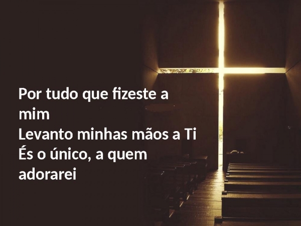 - Por tudo que fizeste a mimLevanto minhas mãos a TiÉs o único, a quem adorarei