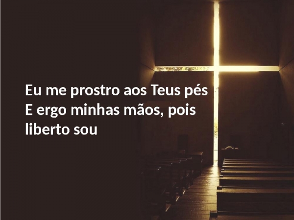 - Eu me prostro aos Teus pésE ergo minhas mãos, pois liberto sou
