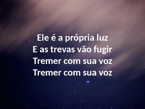 - Ele é a própria luzE as trevas vão fugirTremer com sua vozTremer com sua voz