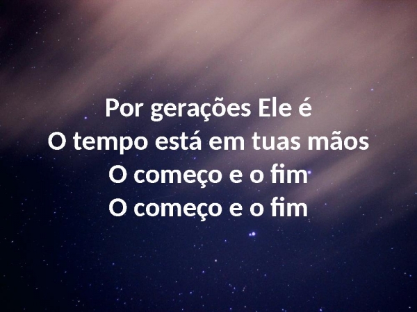 - Por gerações Ele éO tempo está em tuas mãosO começo e o fimO começo e o fim