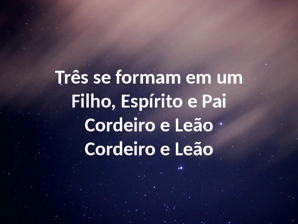 - Três se formam em umFilho, Espírito e PaiCordeiro e LeãoCordeiro e Leão
