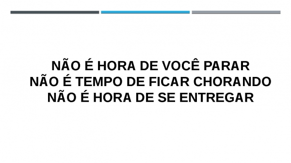 - Não é hora de você pararNão é tempo de ficar chorandoNão é hora de se entregar