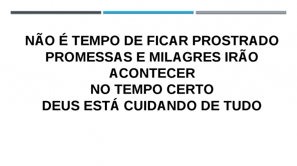 - Não é tempo de ficar prostradoPromessas e milagres irão acontecerNo tempo certoDeus está cuidando de tudo