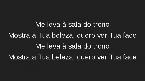 - Me leva à sala do tronoMostra a Tua beleza, quero ver Tua faceMe leva à sala do tronoMostra a Tua beleza, quero ver Tua face