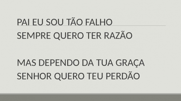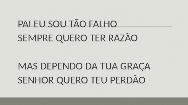 - PAI EU SOU TÃO FALHOSEMPRE QUERO TER RAZÃOMAS DEPENDO DA TUA GRAÇASENHOR QUERO TEU PERDÃO