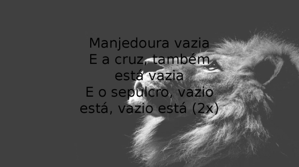 - Manjedoura vaziaE a cruz, também está vaziaE o sepulcro, vazio está, vazio está (2x)