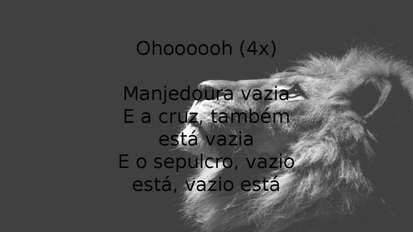 - Ohoooooh (4x)Manjedoura vaziaE a cruz, também está vaziaE o sepulcro, vazio está, vazio está