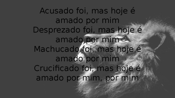 - Acusado foi, mas hoje é amado por mimDesprezado foi, mas hoje é amado por mimMachucado foi, mas hoje é amado por mimCrucificado foi, mas hoje é amado por mim, por mim