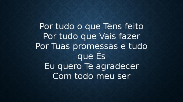 - Por tudo o que Tens feitoPor tudo que Vais fazerPor Tuas promessas e tudo que ÉsEu quero Te agradecerCom todo meu ser