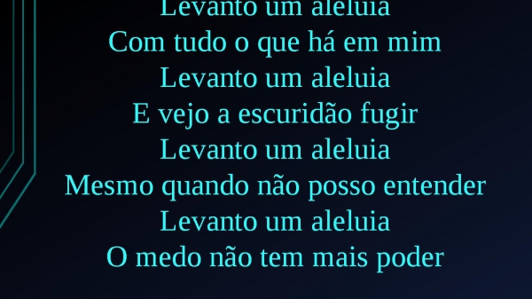 - Levanto um aleluiaCom tudo o que há em mimLevanto um aleluiaE vejo a escuridão fugirLevanto um aleluiaMesmo quando não posso entenderLevanto um aleluiaO medo não tem mais poder