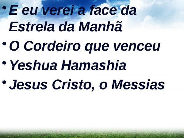 - E eu verei a face da Estrela da ManhãO Cordeiro que venceuYeshua HamashiaJesus Cristo, o Messias