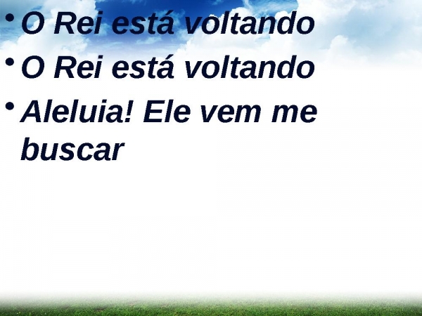 - O Rei está voltandoO Rei está voltandoA trombeta está soandoO meu nome irá chamar